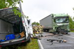 Die Feuerwehr Stadt Schrobenhausen wurde gemeinsam mit der Freiwilligen Feuerwehr Peutenhausen zu einem schweren Verkehrsunfall auf der Bundesstraße 300 bei Peutenhausen alarmiert. Ein Transporter war frontal mit einem LKW zusammengestoßen, zudem wurde ein parallel fahrender Pkw im Heckbereich in Mitleidenschaft gezogen.
